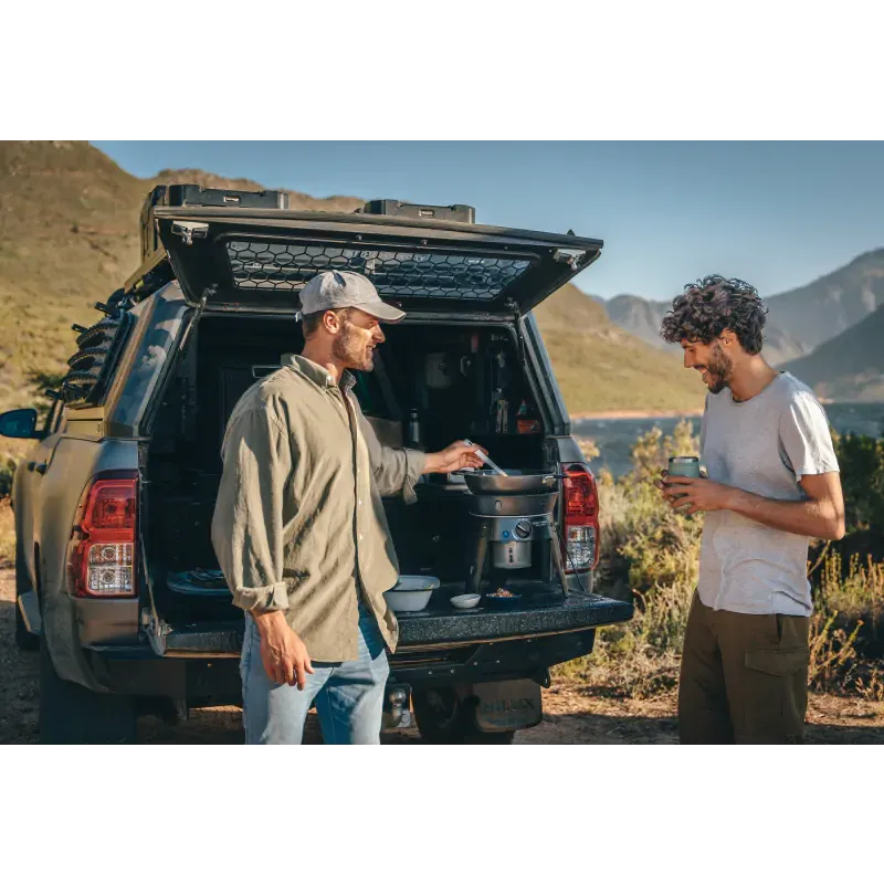 Safari Chef 30 LP Deluxe е изключително леко и многофункционално газово барбекю, проектирано специално за любителите на приключенията на открито. С тегло само 4,5 кг и цели четири различни повърхности за готвене, това е идеалният спътник за къмпинг, пикник или ваканция: