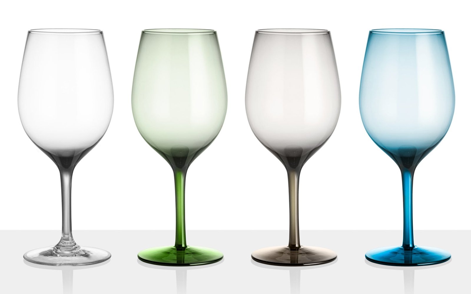 Стилни чаши за вино с класическа форма в смесени цветове, изработени от издръжлив и качествен поликарбонат. Опаковка от 4 чаши по 600мл.
