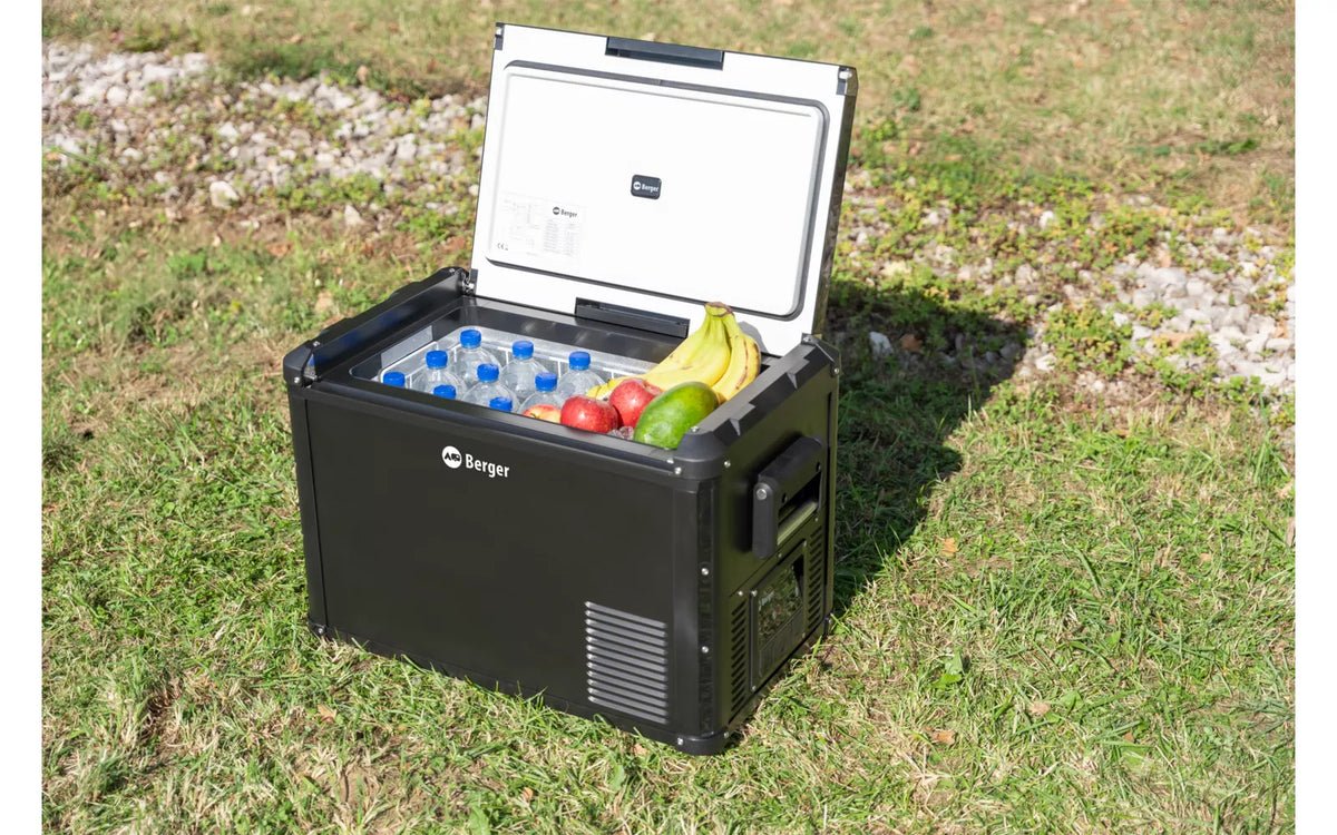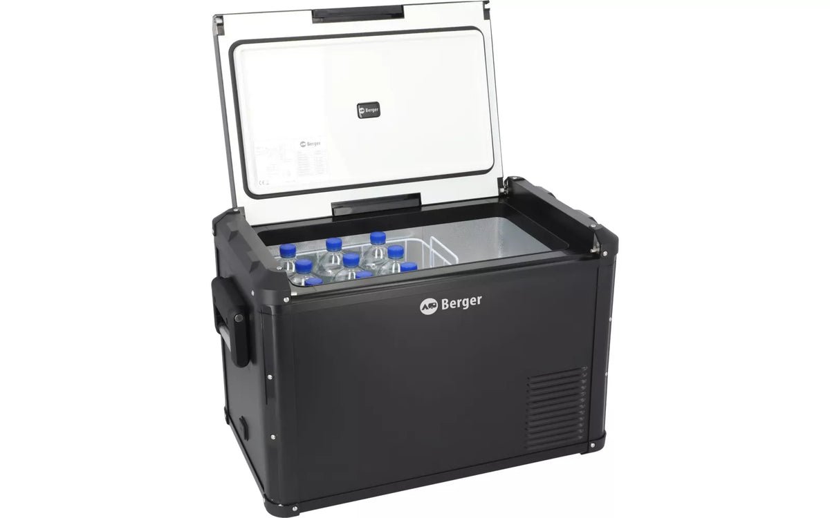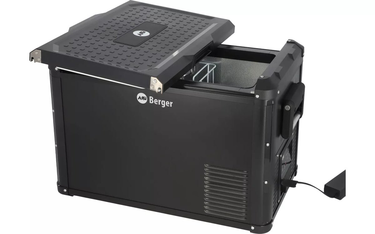 Преносимият компресорен хладилник на немската марка Berger с електронен дисплей, поставя нови стандарти, за да гарантира, че приключенията ви ще са свежи и прохладни. Бързо замразяване до -18°C.