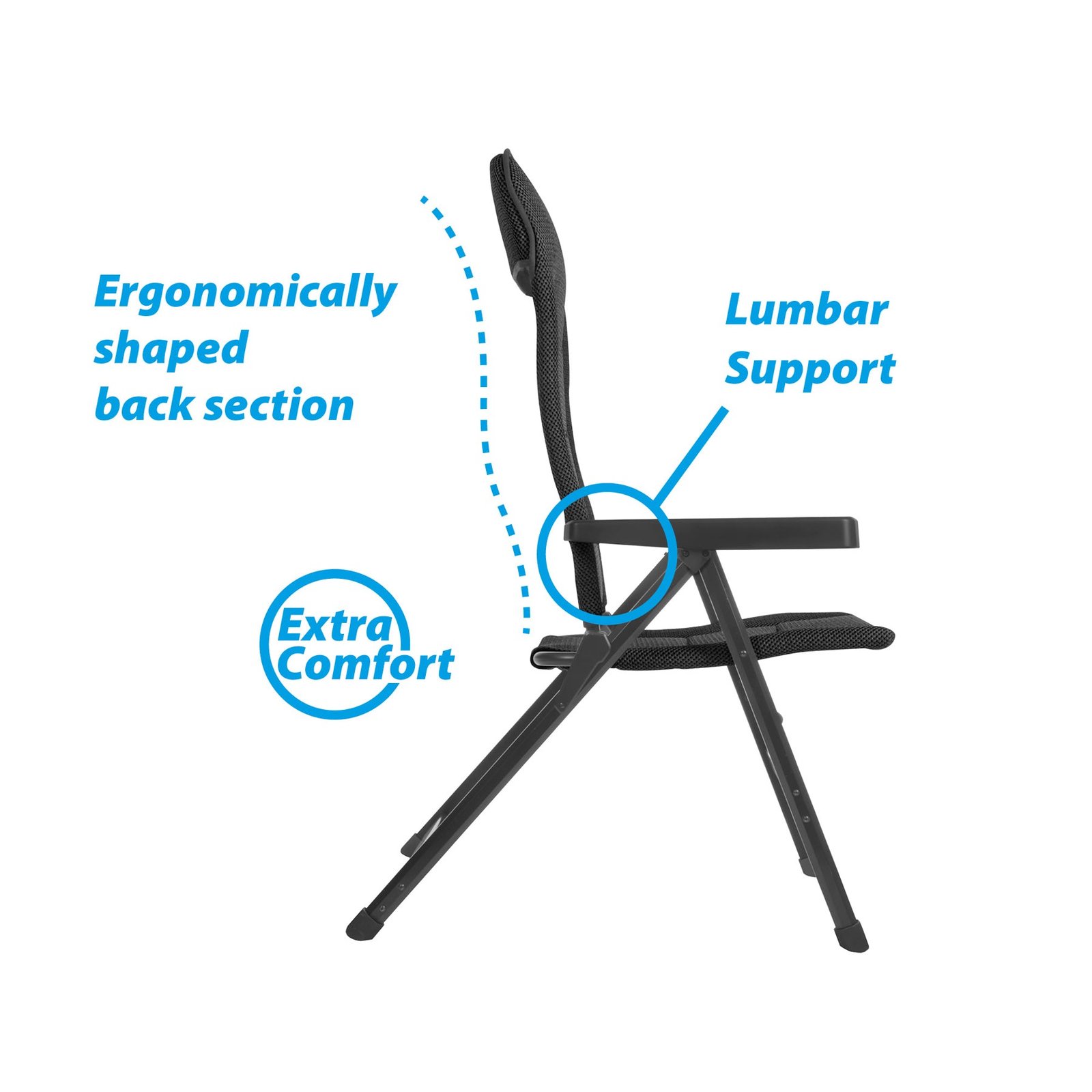 Висок клас луксозен сгъваем стол за къмпинг от BRUNNER. Модерен дизайн, дишащ текстил и подсилени с метал подлакътници за регулиране на облегалката. Изключително стабилна и спестяваща място конструкция, съчетана с модерен, функционален дизайн.