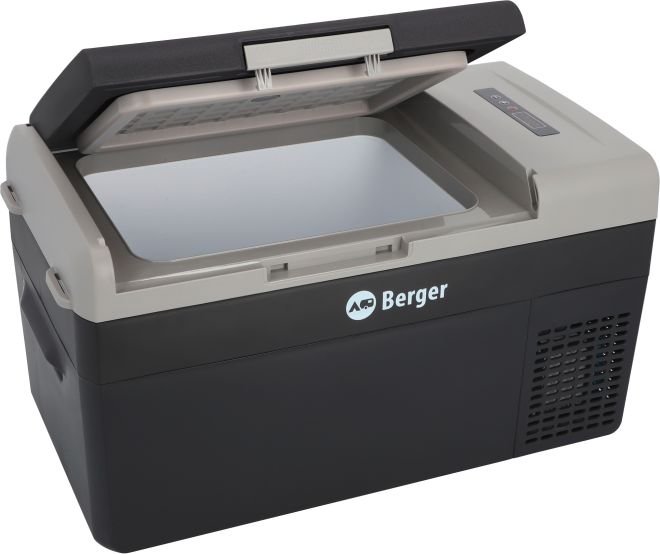 Преносим компресорен хладилник за кола от немската марка Berger. Осигурява бързо охлаждане и лед, като запазва храната и напитките ви студени. Замразява до -20°C градуса.