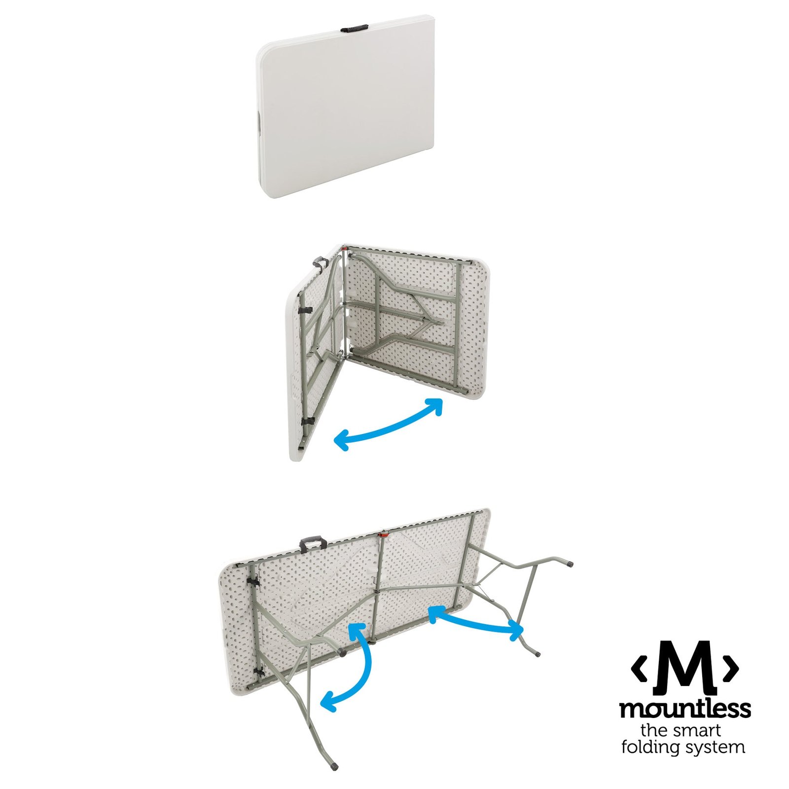 Голяма парти сгъваема маси, идеални за събития, партита и рожден ден. Здрава конструкция лесна за разпъване, пластмасов плот лесен за почистване. Кетъринг маса.Характеристика:• Предпазна система за заключване на краката• Нивелиращи крачета• Много плосък в сгънато състояние – лесен за съхранение• Формован плот за маса• Стоманени крака с прахово покритие• Дълготрайно качество