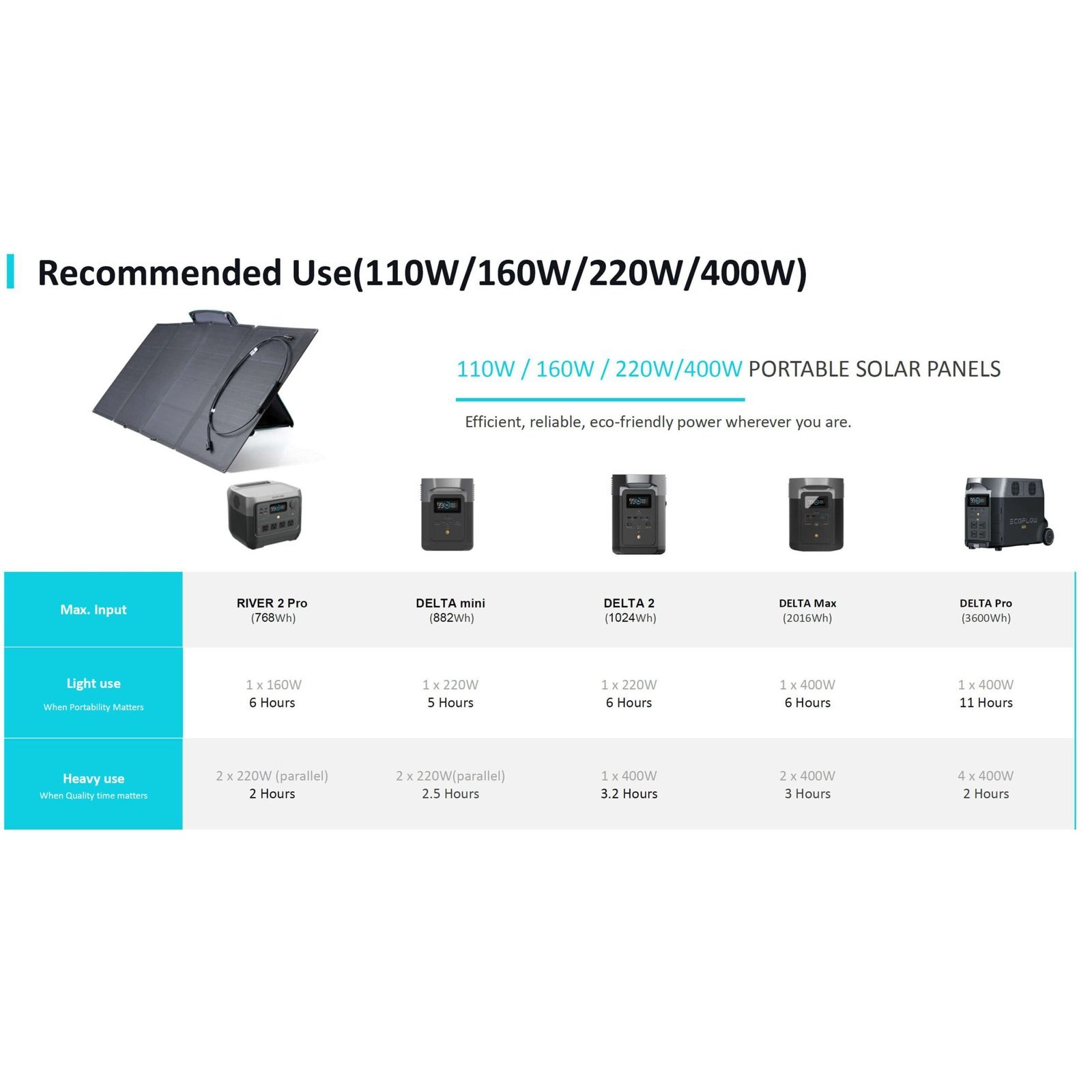 • В сравнение с други соларни панели, функцията за верижно свързване ви позволява да свързвате соларните панели с паралелния кабел, което ви осигурява достатъчно енергия за вашата електроцентрала; (4 x 110W соларни панели в паралел за DELTA, 2 x 110W соларни панели в паралел за серията RIVER)