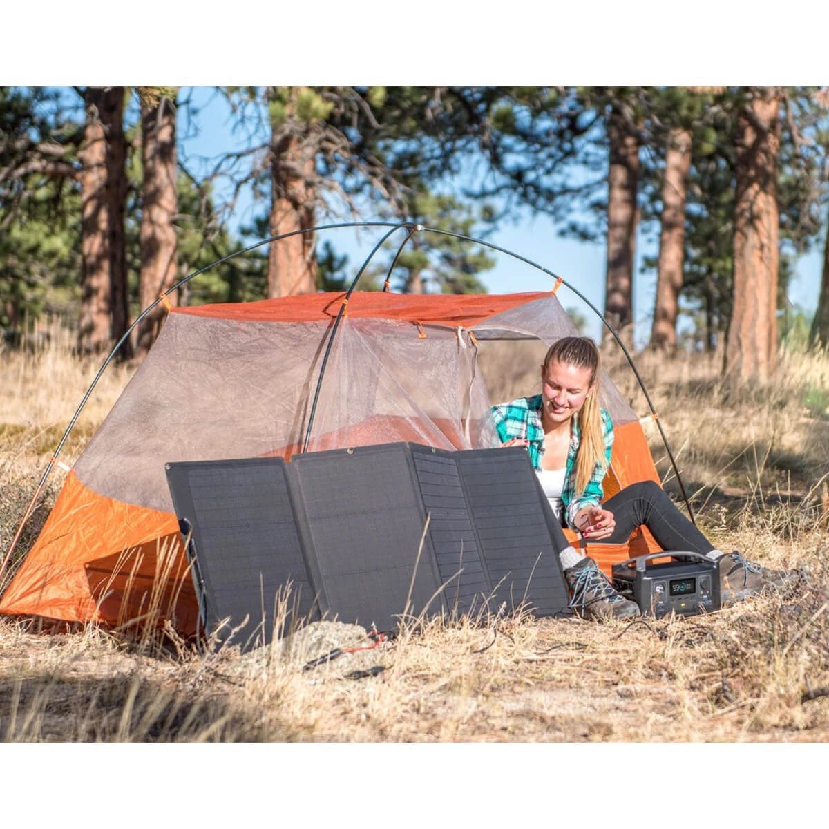 • Останете независими с EcoFlow 110W соларен панел. Съставен от ефективни монокристални силициеви клетки, той може да зарежда преносими електростанции и вашите електрически устройства. Поддържайки работата на оборудването ви без прекъсване, вие имате сигурно захранване, когато е свързан към преносима електростанция