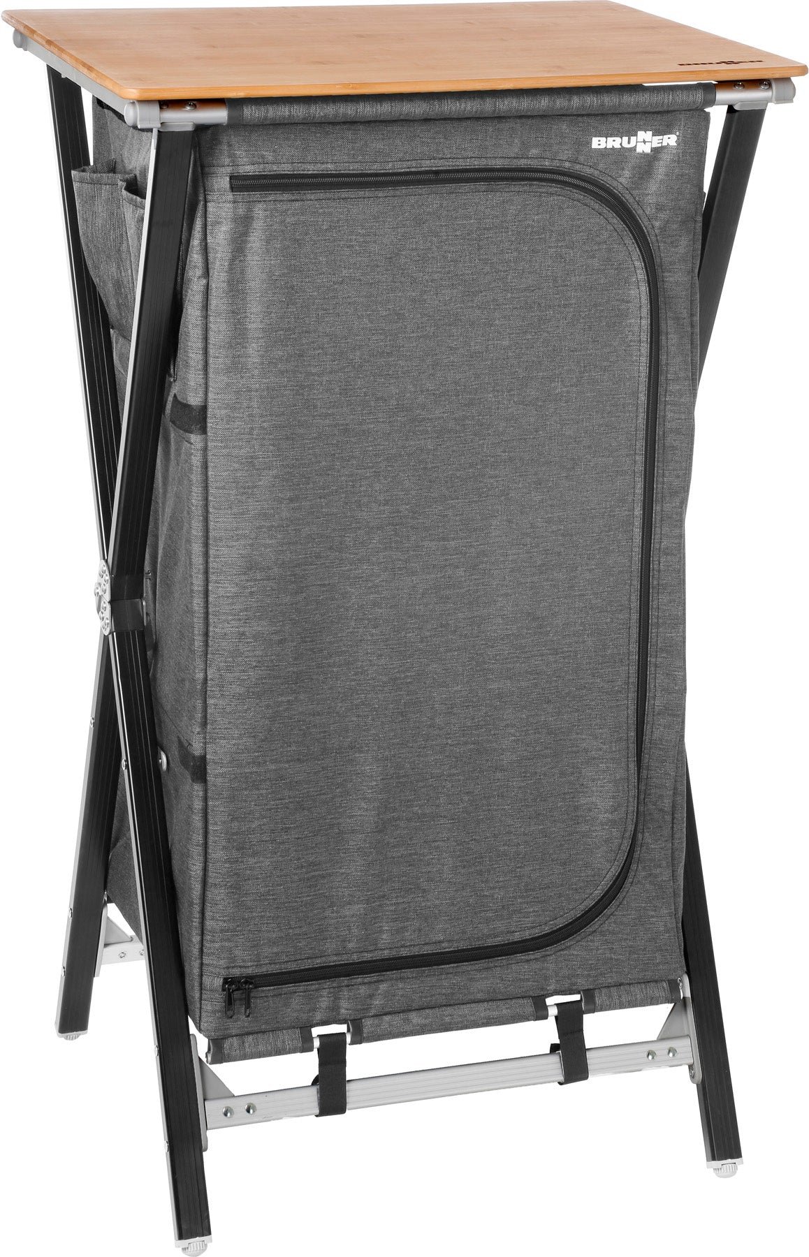 Сгъваем шкаф с рафтове за къмпинг с бамбуков плот. Лесно разгъане. Красив дизайн за форселт или голяма палатка. Здрав шкаф с кръстата рамка от правоъгълен алуминиев профил и централна метална панта. Всички крачета са с регулируема височина. С 3 вътрешни рафта и горен работен плот от бамбук. Лесен монтаж без разглобяване. Изберете подходящия за вас къмпинг шкаф от GoCampy.
