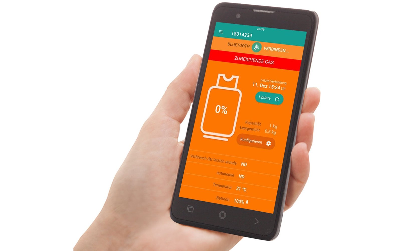 ВНИМАНИЕ: Газовите бутилки и четящото устройство (смартфон, таблет и др.) не са включени!