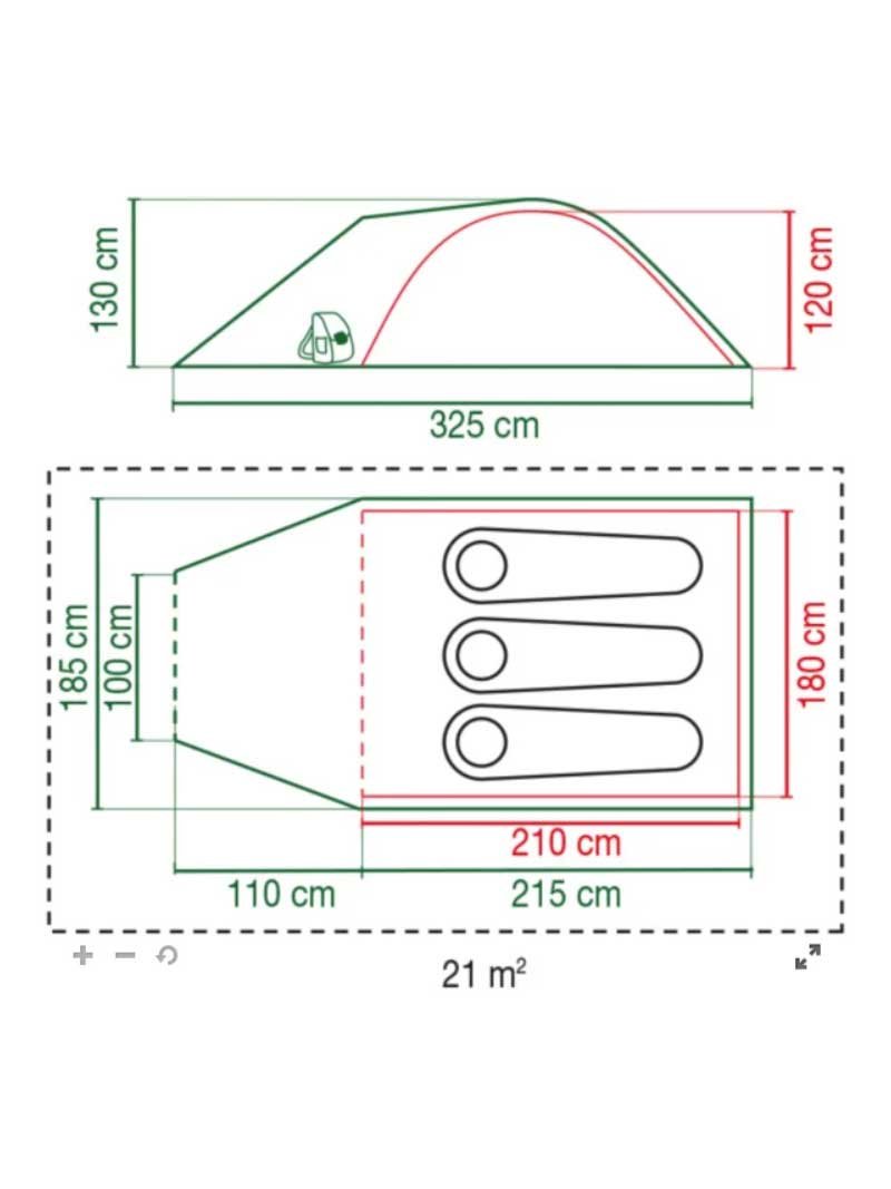 • Външната част на палатката е изработена от Polyester, с покритие от PU, воден стълб 3000мм, подлепени шевове.
