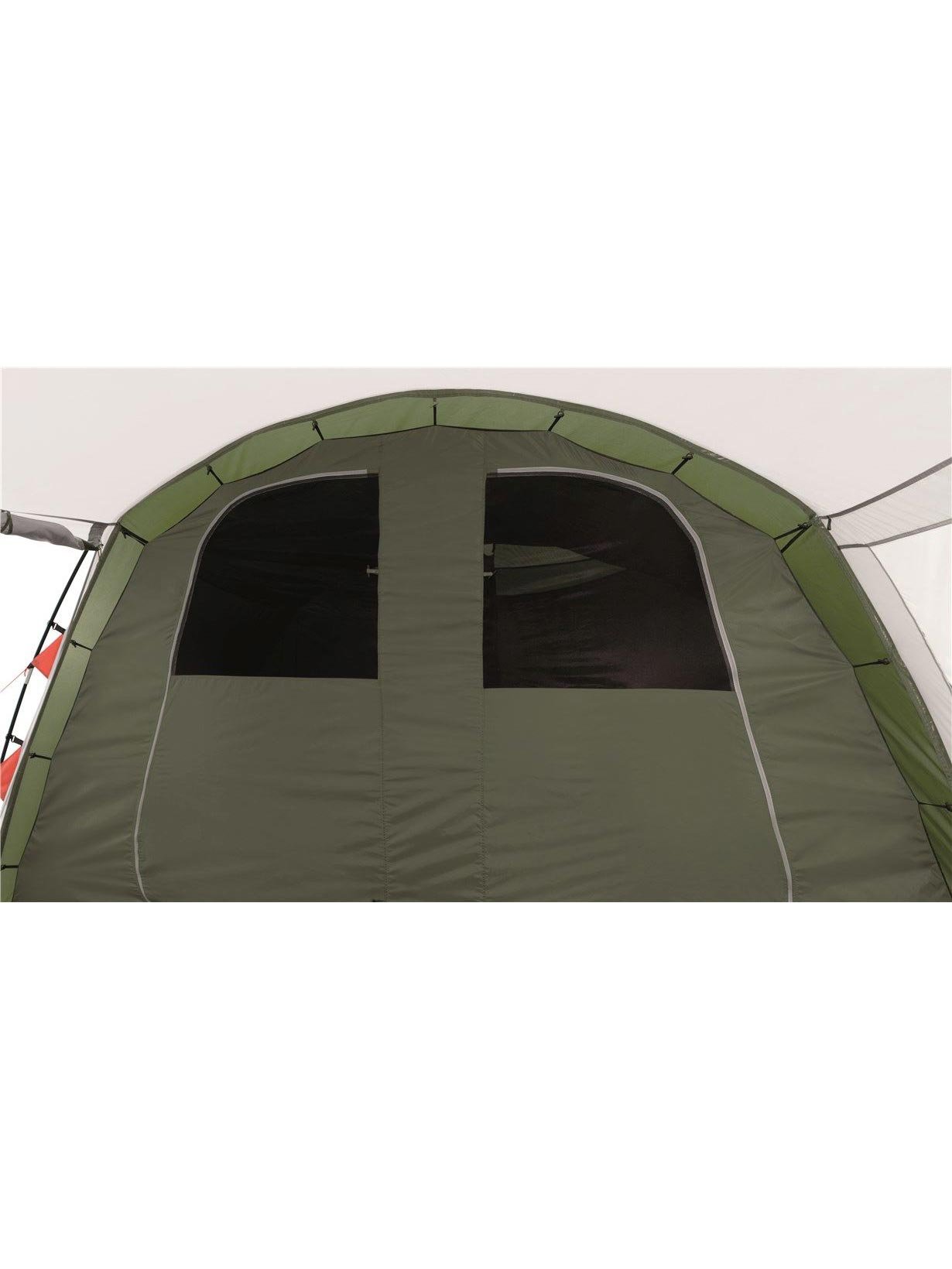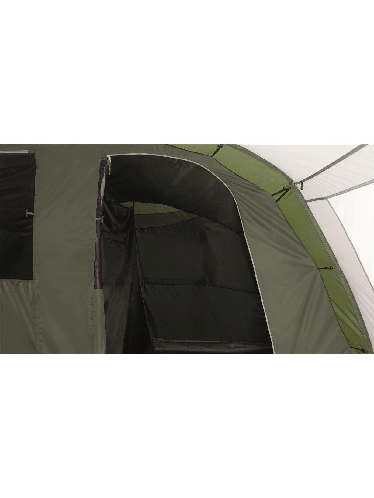 Шестместна палатка с двойни врати и разделител, здрави рейки, които предлагат пространство в антрето да се движите изправени. Палатката притежава три прозореца, странична врата и вентилационни отвори. Пода в антрето може лесно да се свали за почистване.