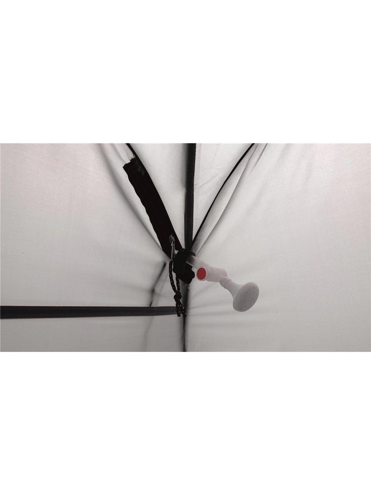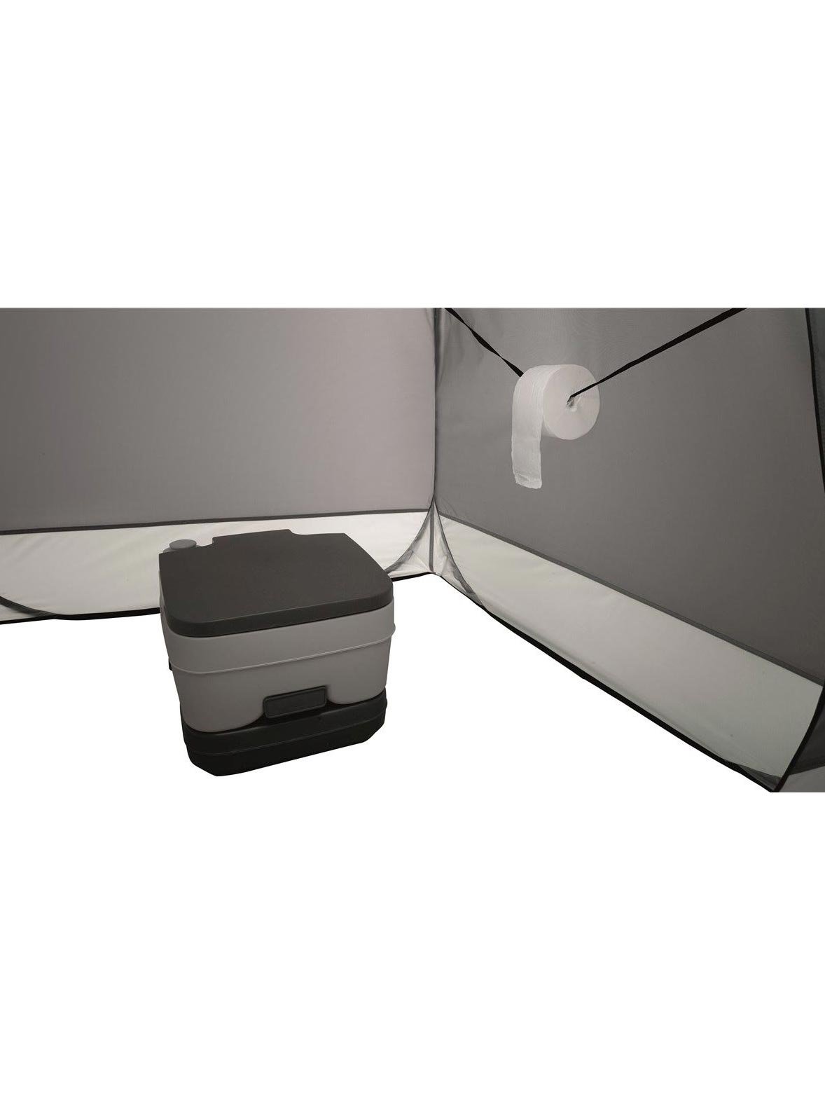 Тента, подходяща за къмпинг. Може да я използвате за тоалетна, за използване на душ или за преобличане на плажа. Осигурява дискретност. Има мрежеста материя с качулка в горната част за вентилация. Предназначена е за временна употреба като кратки къмпинги, градини през уикенда и спортни събития и не трябва да се използват като постоянно или дългосрочно решение за подслон.
