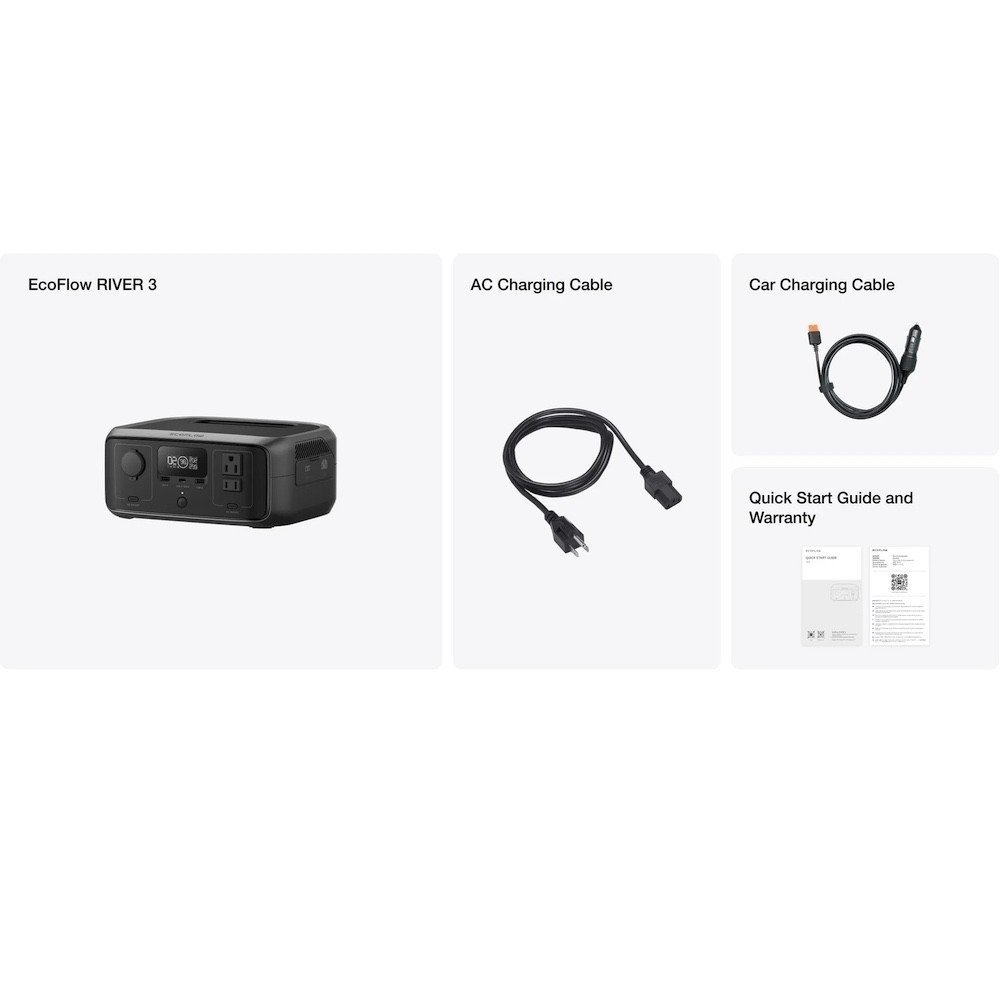 Безшумен малък агрегат за ток за зареждане на различна техника и устройства – EcoFlow RIVER 3 Portable Power Station 256Wh (черен)