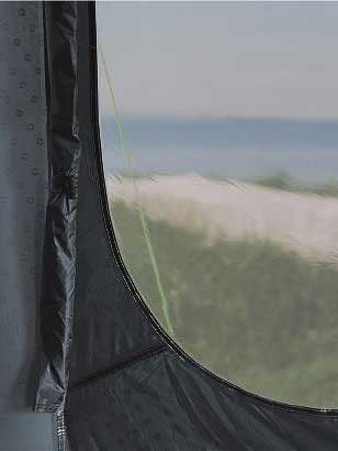 • Затъмнените прозорци осигуряват защита от слънчевите отблясъци и уединение в палатката.